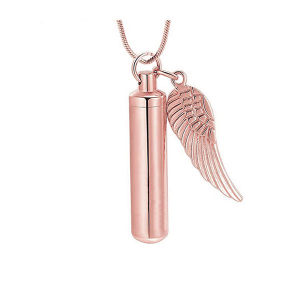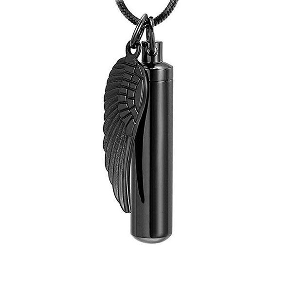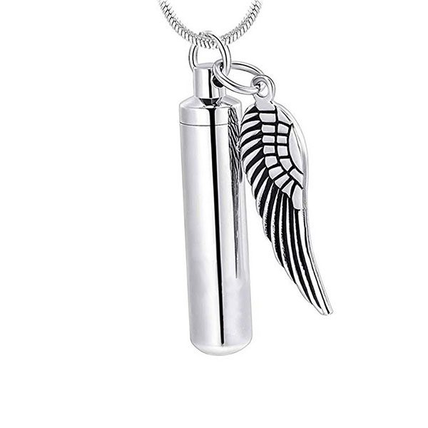 Our Angel Wing Urn Pendant can be worn as a pendant or used as a keychain which is a special way to hold a bit of your pet’s cremains. This pendant/keychain is made of stainless steel. The cylinder portion is design to hold ashes. The top unscrews and opens wide for easy placement of cremains. Please Note: Chain not included. We recommend sealing the compartment closed after placing in the pet’s remains with clear super glue.